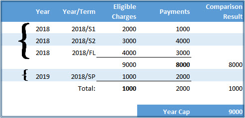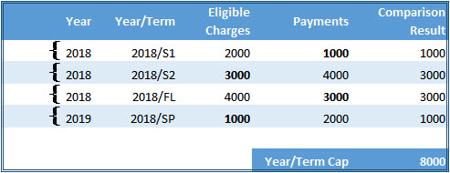 Per IRS regulations, all current calendar year payment transactions marked "1098-T eligible" must appear on the 1098-T form for that year. Transaction history data is extracted based on the transaction date and 1098-T eligibility flag. Once the data has been retrieved, the year/term start and end dates help determine which box each amount is included in.