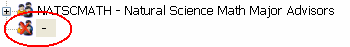 When the Search/Filter By criteria are entered and you click the Find button, the Advising Group Tree displays selected Advising Groups. When the Advising Group is expanded (click on the + beside the group), its members are displayed in hierarchical order by assigned Advisor Number (not ID Number) in descending order. The Primary Advisor is listed at the bottom of the tree (note the different icon for primary advisor as opposed to the icon for the secondary advisors).