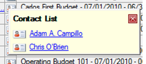 Sometimes more than one contact profile is displayed in a row. In those cases, clicking the contact profile icon opens a Contact List so you can choose the appropriate staff person for whom you want to view a contact profile or sent an e-mail message. Clicking the e-mail address link of a column with multiple e-mail addresses opens the Send Email window with the e-mail addresses of all listed users in the To line.