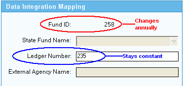 The Old Mapping (see red circle) indicates the Fund ID. The New Mapping (see blue circle) indicates the Ledger Number. Note that the values are the same in both fields. It also equates to the Fund Code in J1. Jenzabar recommends setting the Ledger Number to be equal to the Fund ID in the award year you implement J1 Desktop. A script to do this is provided (see above) and has been sanctioned by The College Board. However, you are free to set this to your own preferred coding.