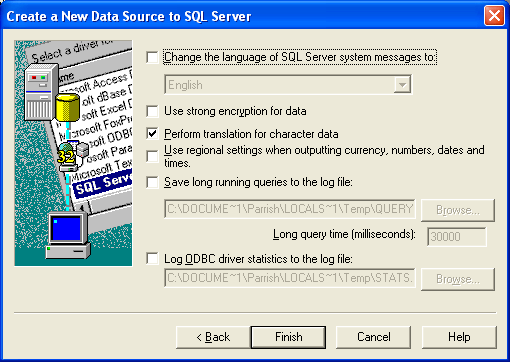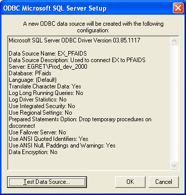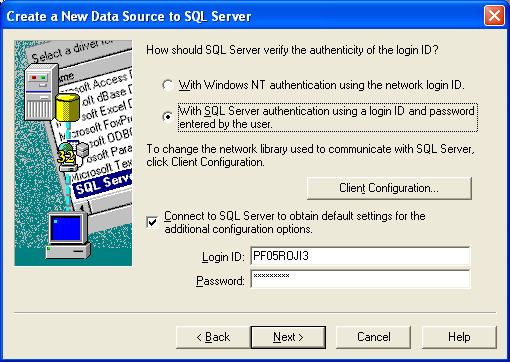 ·       An ODBC connection that accesses the PowerFAIDS database using the same profile name, user, and password that is stored in the J1 database. See the "How To Set Up a MS SQL Server ODBC Connection" section below.