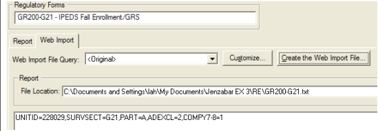 b. Click the Create the Web Import File button to create the Key Value Pair text file that you can use to import your data when you are logged in to the NCES IPEDS website.