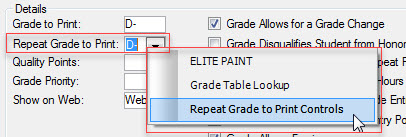 Have the Repeat Grade to Print Controls values appear in transcripts and reports
