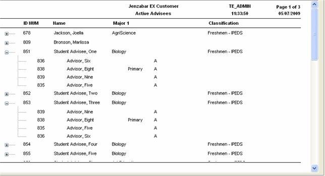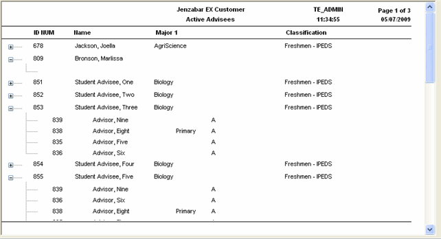 If you have access to the Advising Groups tab or Assign Advisees tab on the Maintain Advising Groups window, you also have access to the Reports tab. This tab allows you to select and retrieve the following InfoMaker reports that are available in the Advising module. If the selected report is a tree-view report, you can use the Expand All checkbox to expand or collapse all detail lines in the report.