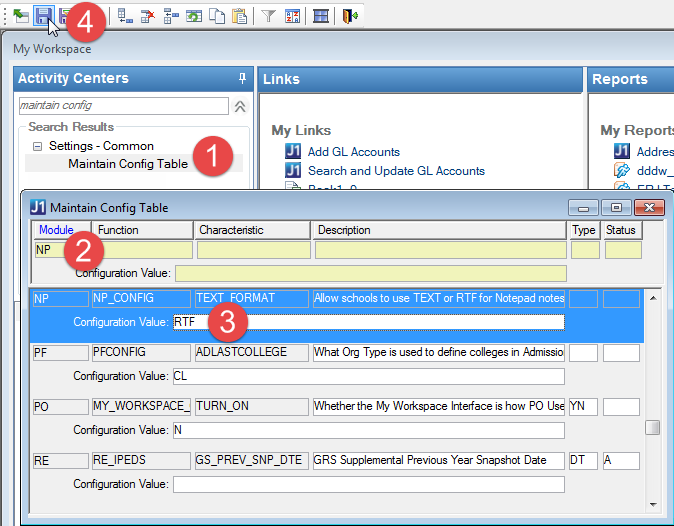3. In the Configuration Value column, enter the appropriate text that displays in the Ethnicity and Race portlet in campus portal (JICS) for the Nonresident Alien radio button.