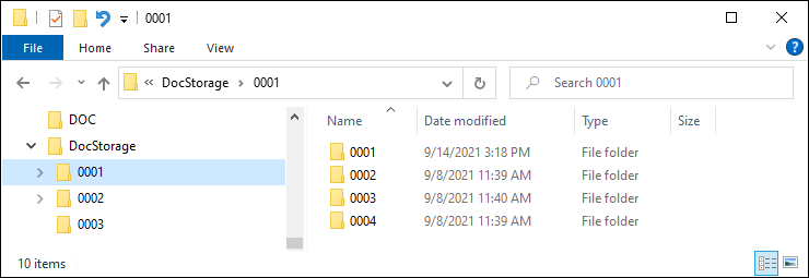 e. Current Storage Folder and Sub-Folders default to 0001. These are the names the folders will be given when they are created on the network. Files will be added until the folder reaches the maximum files per folder allowed and then new folders will be created. You can change these names, but Jenzabar recommends using a numbering convention to help keep the folder orders straight.
