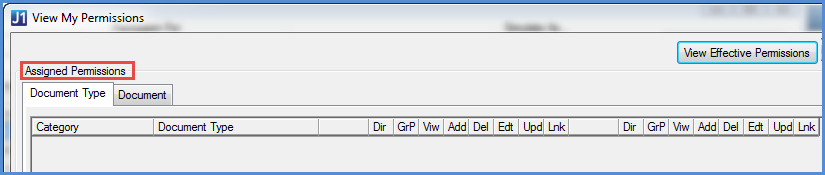 From there, you can click View Assigned Permissions to see only the permissions directly granted to you or the simulated user, group, or J1 Web role.