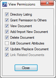 You can grant a user permissions for a particular document or for every document of a particular type. Users might also have permission because they are in a group or a J1 Web role that has permission.