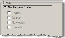 Depending on the value selected in the Ethnic Report Description column, additional checkboxes may display. These checkboxes further define the value in the Ethnic Report Description column.