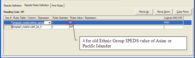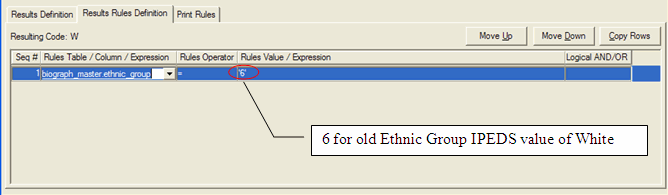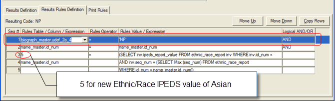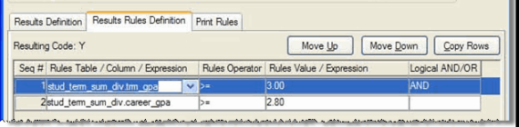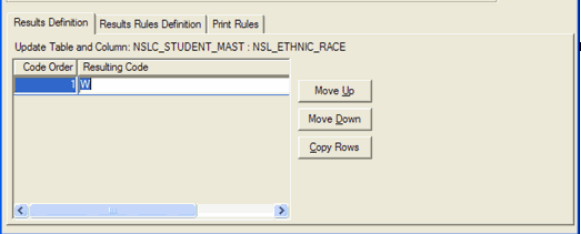 · If your school has only one OPE ID, the OPE rule can be defined by adding a row in the Results Definition tab of the Update Results and Rules window.