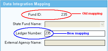 The Old Mapping (see red circle) indicates the Fund ID. The New Mapping (see blue circle) indicates the Ledger Number. Note that the values are the same in both fields. It also equates to the Fund Code in J1. Jenzabar recommends setting the Ledger Number to be equal to the Fund ID in the award year you implement J1 Desktop. A script to do this is provided (see above) and has been sanctioned by The College Board. However, you are free to set this to your own preferred coding.