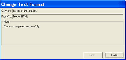 · The Note in the Change Text Format window indicates when the data conversion is completed.