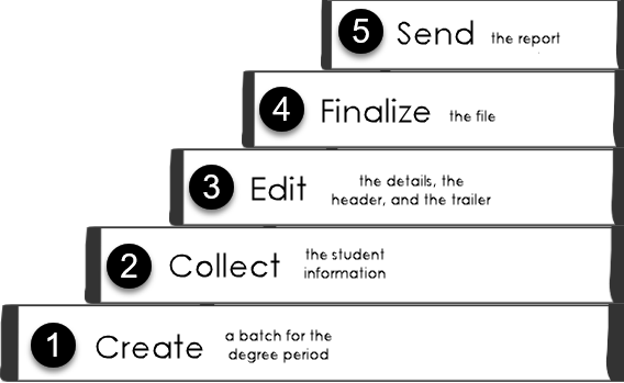 Prepare this report on the NSC Degree Verification Data Collection and Transmission window. The window's tabs lead you through the steps.