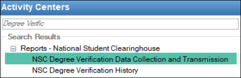Open the NSC Degree Verification Data Collection and Transmission window.
