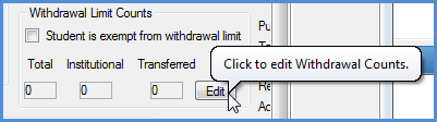 If Use Course Withdrawal Limit is not selected, then withdrawal counts will not appear in any windows.