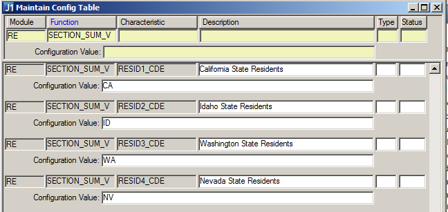 4. Define other geographical areas of interest (determined by your school) in the Maintain Config Table window.