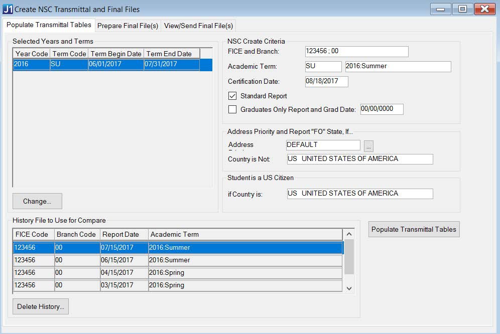 If you find inaccuracies, make corrections in the NSC Edit Transmittal History Records window for the Report Date you are selecting as the History File to Use for Compare for your current file. Then use the Populate Transmittal Tables process again to refresh the data collected for your current file once you’ve saved those corrections. You may also need to make corrections in the NSC system.