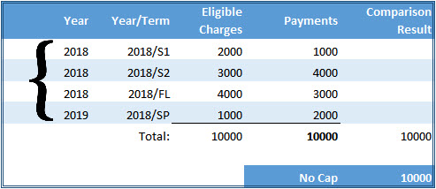 Payment Amount: the amount the student has paid in the associated tax year, cap year, or year/term, depending on the selected capping method.