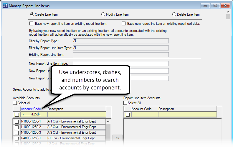 · Add accounts to your new report line item