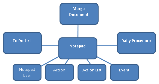 The Notepad window is a hub for many facets of Communication Management. Other key windows include To Do List, Merge Document, and Daily Procedure. Each of these is a gateway to more windows that work together to create a powerful communication system.