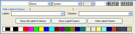 · Formatting buttons are used to format a label or column: Bold, Italics, Underline, Left Align, Center Align, and Right Align.