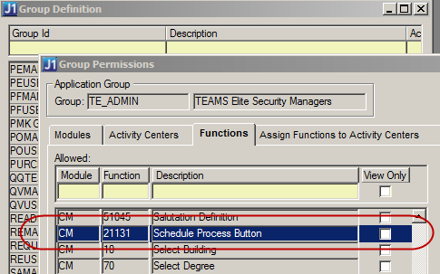 Jenzabar recommends creating group names based on the type of process to