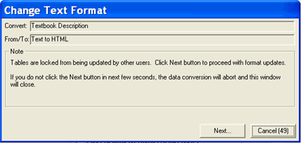 When a different text format is selected, data in TEXTBOOK_DEF.BOOK_DESC table is converted to the newly selected text format.