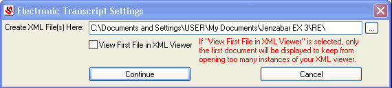 ??? If you select the View First File in File Viewer checkbox, the process attempts to open the first Electronic Transcript document created using your default viewer (established in Windows). Selecting this checkbox allows you to validate the file with an Editor application.
