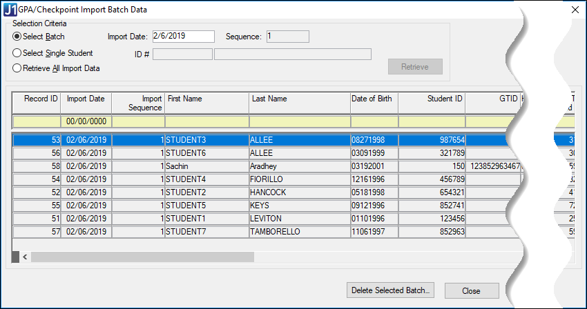 Instead of a batch, you can retrieve an individual student's records (from all batches), or you can retrieve all the batches at once.