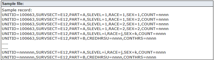 The database output view for the report is this: IR_IPEDS_E12_V