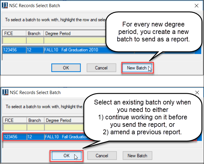 As soon as the window launches, the NSC Records Select Batch window pops up to let you create a new batch.