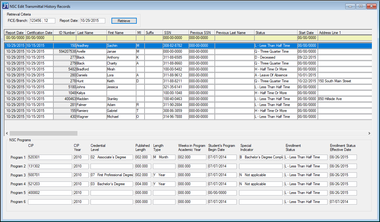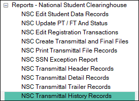 The NSC Maintain Student Data Records window uses these to populate the NSC master table. |