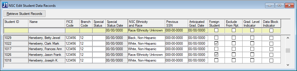 Again after these updates, verify the results in the NSC Edit Student Data Records window.